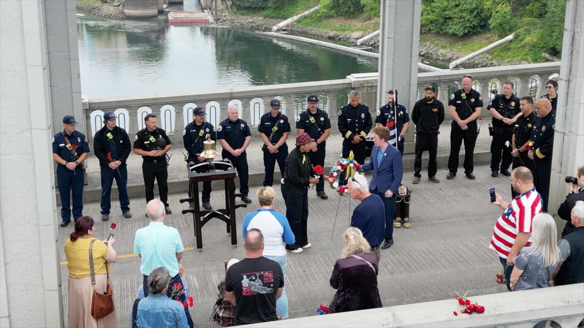 Modeled after the original 2002-04 events, where there was no speaking, just a few moments of silence, introspection, and reflection … and then the dropping of a wreath into the river by the mayors of West Linn and Oregon City. We’ve added a bit of ceremony, including the “missing man” fire bell ring by TVF&R.